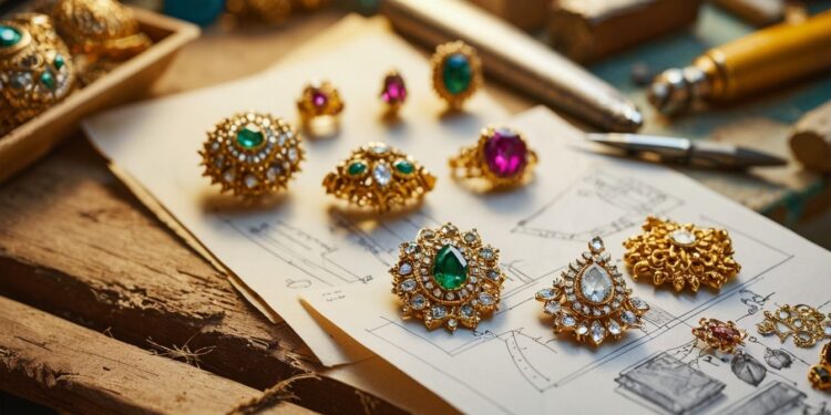 Crafting Kundan jewellery involves a precise process of embedding gemstones in gold foil. This intricate craftsmanship requires skilled goldsmiths and careful selection of high-quality gemstones.